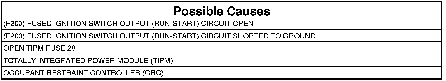 - Repair the open (F200) Fused Ignition Switch Output (Run-Start) circuit.