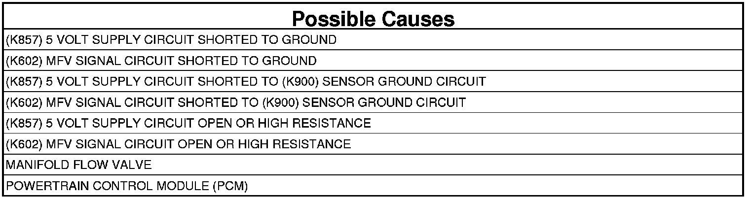 - Repair the (K602) MFV Signal circuit for a short to the (K900) Sensor Ground circuit.