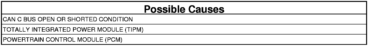 The Powertrain Control Module (PCM) doesn't receive a Totally Integrated Power Module (TIPM) message over the CAN C bus for seven consecutive seconds. The circuit is continuously monitored.
