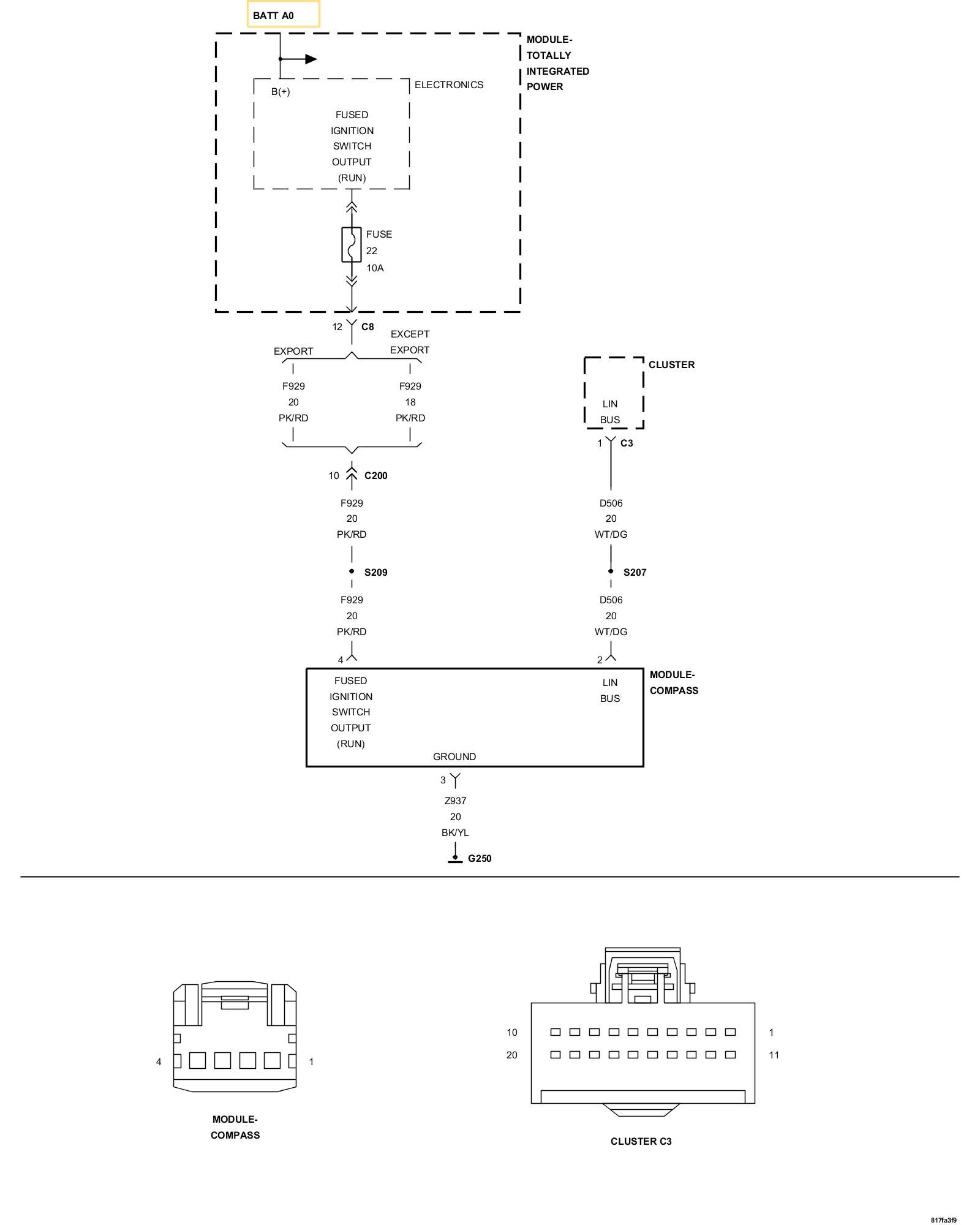 The Cluster does not receive information from the Compass Module.