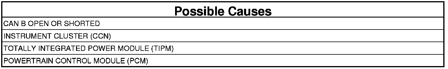 The Totally Integrated Power Module (TIPM) isn't receiving a fuel volume signal over CAN B from the Cluster Module. The TIPM has to send the PCM a fuel volume signal over CAN C. The signal the TIPM sends over CAN C is implausible.