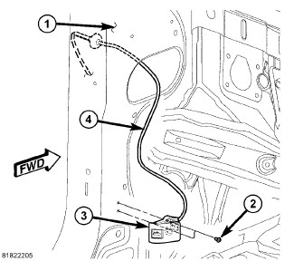 1. Install the cable (1) and route through the cowl panel (3).