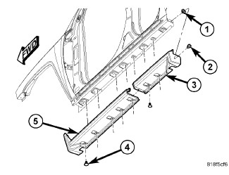 1. Position the rear cladding (3) onto the vehicle and install the pushpin fasteners (4).
