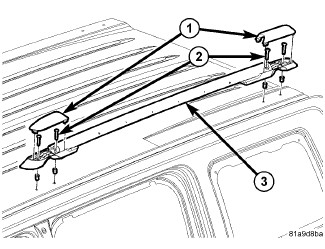 1. Install the roof rack rails (3) and install the screws (2).