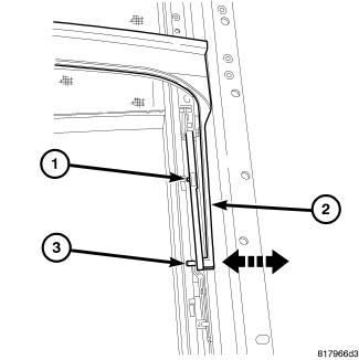 3. Install the trough guide pins into the glass lift mechanism (3) and seat fully.