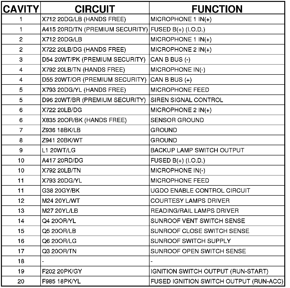 C202 (Headliner Side) 20 Way