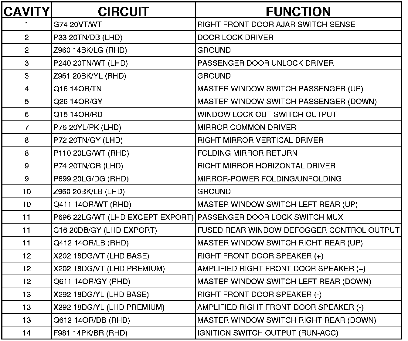C303 - (RIGHT FRONT DOOR SIDE) 14 WAY