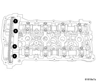 CAUTION: DO NOT use a number stamp or a punch to mark camshaft bearing caps. Damage to bearing caps could occur.