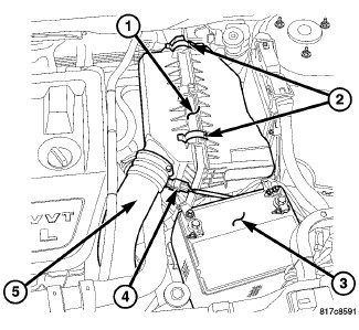 5. Remove clean air hose (5) and air cleaner housing (1) Air Cleaner Body - Removal.