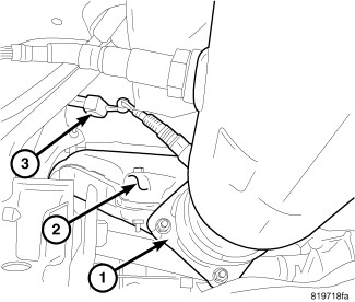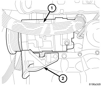 41. Remove wiring harness retainer from intake manifold (2) and reposition harness.