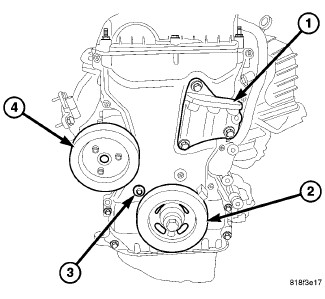 21. Remove three bolts and water pump pulley (4) from water pump.