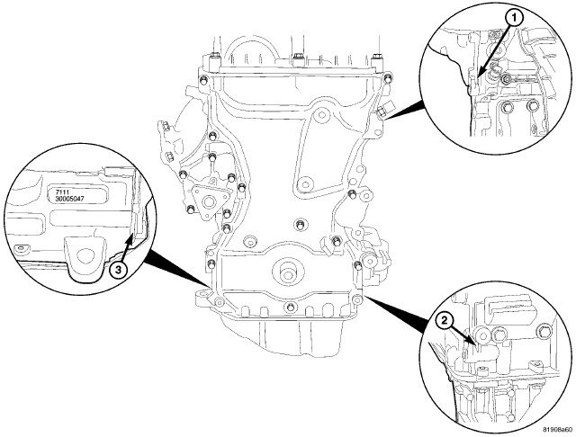 46. Remove four bolts and reposition coolant adapter (3).