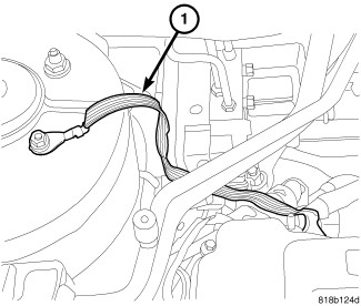 47. Remove ground strap (1) at right rear of cylinder head if equipped.