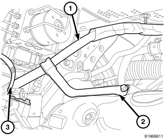29. Remove power steering line support at engine mount (1).