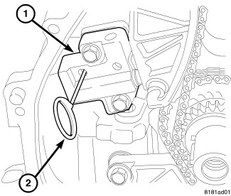 2. Install timing chain tensioner (1) and tighten bolts to 12 Nm (105 in. lbs.).