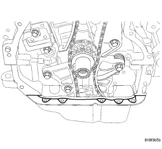 16. Install oil pan to timing chain cover lower retaining bolts (1) and tighten M6 bolts to 9 Nm (80 in. lbs.).