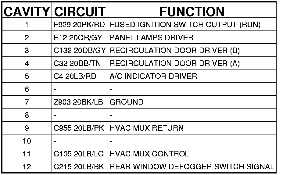 A/C Heater Control C1 (Instrument Panel) 12 Way