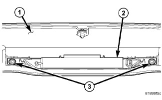 2. Install and tighten the two screws (3) that secure the CHMSL to the liftgate spoiler assembly. Tighten the screws to 3 Nm (27 in. lbs.).