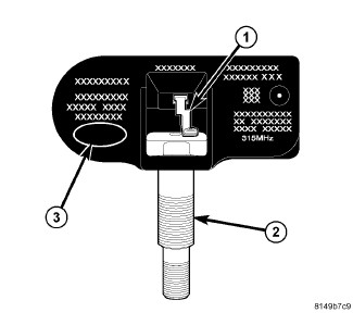 The TPM system operates on a 315 MHz radio frequency. The 315 MHz sensors can be easily identified by a white outline oval (black center) insignia (3) on the sensor body.