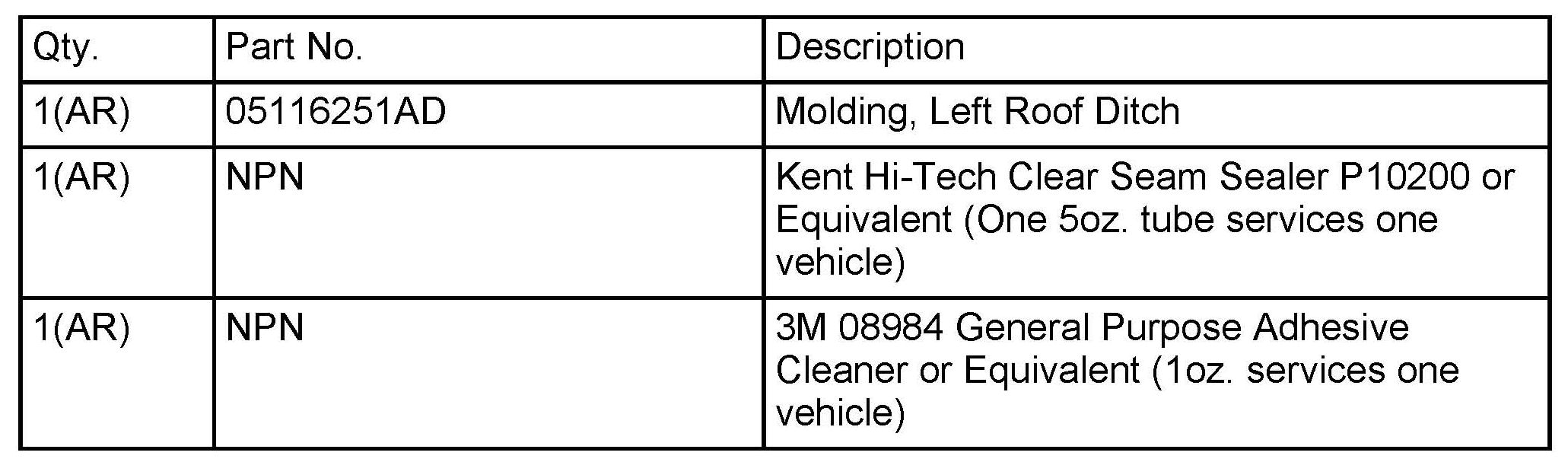 When installing the roof ditch molding apply firm pressure to the molding so proper wet is achieved to insure proper adhesion.