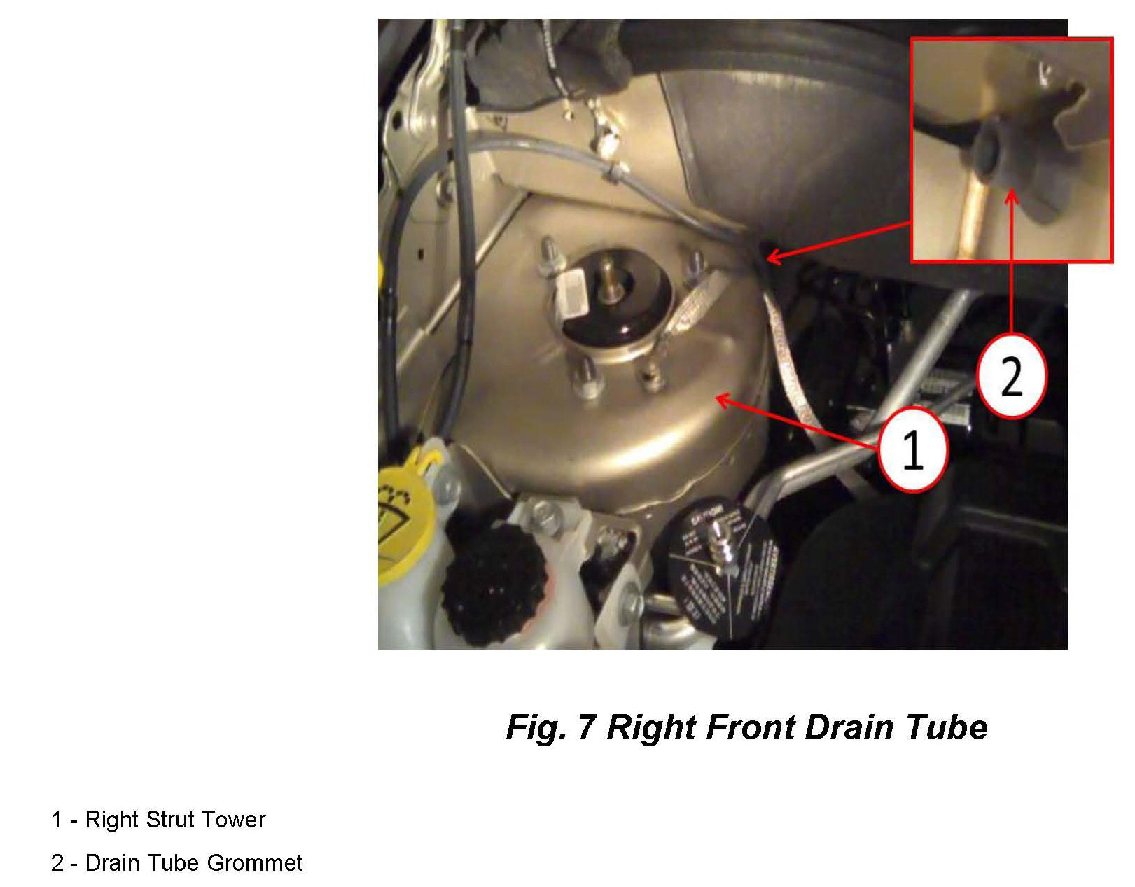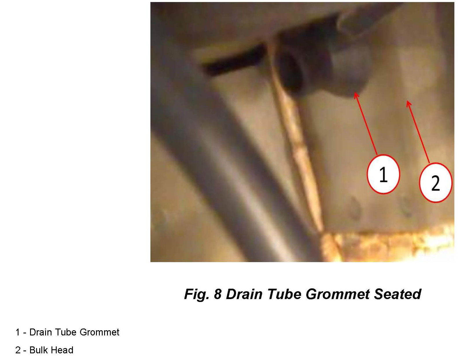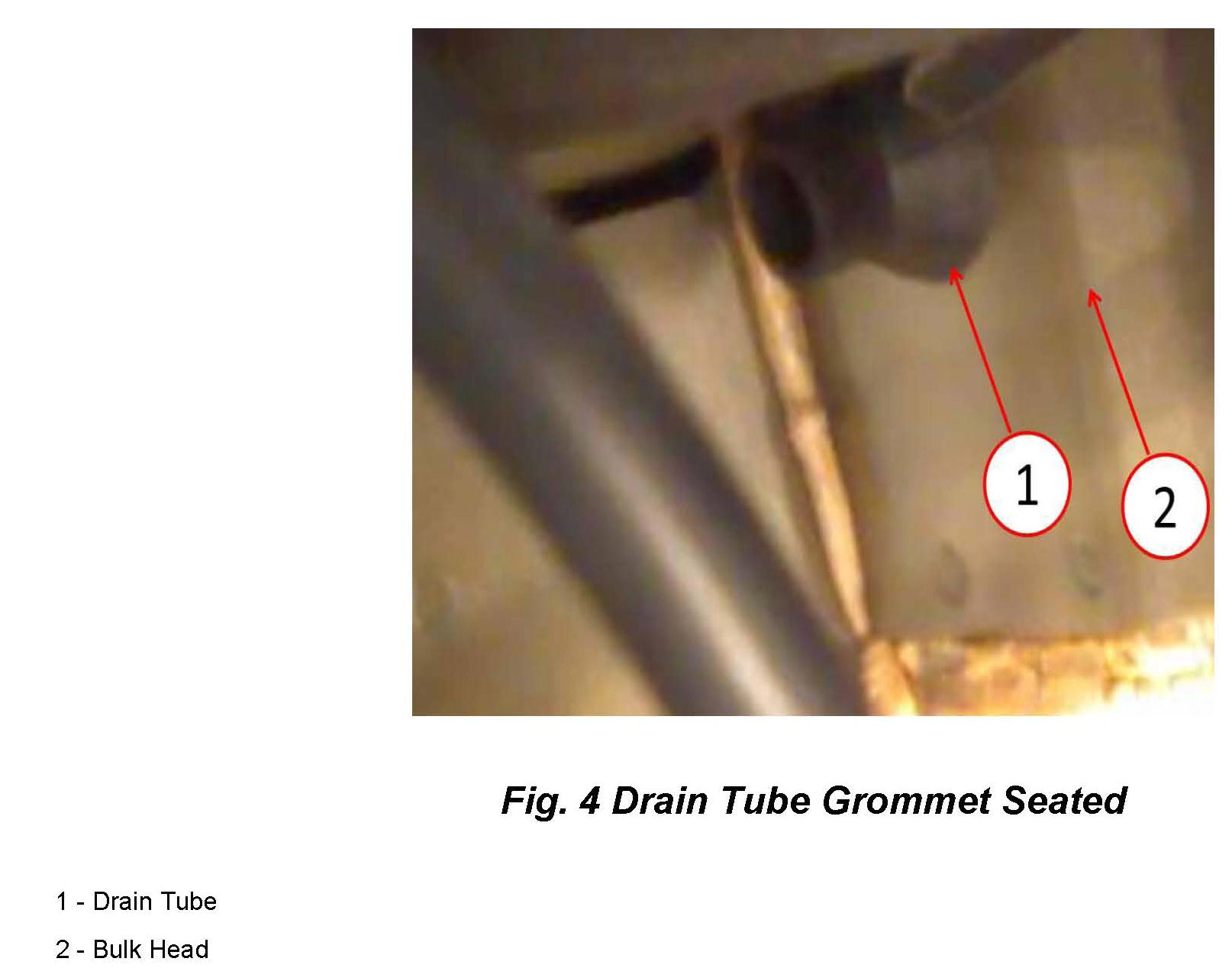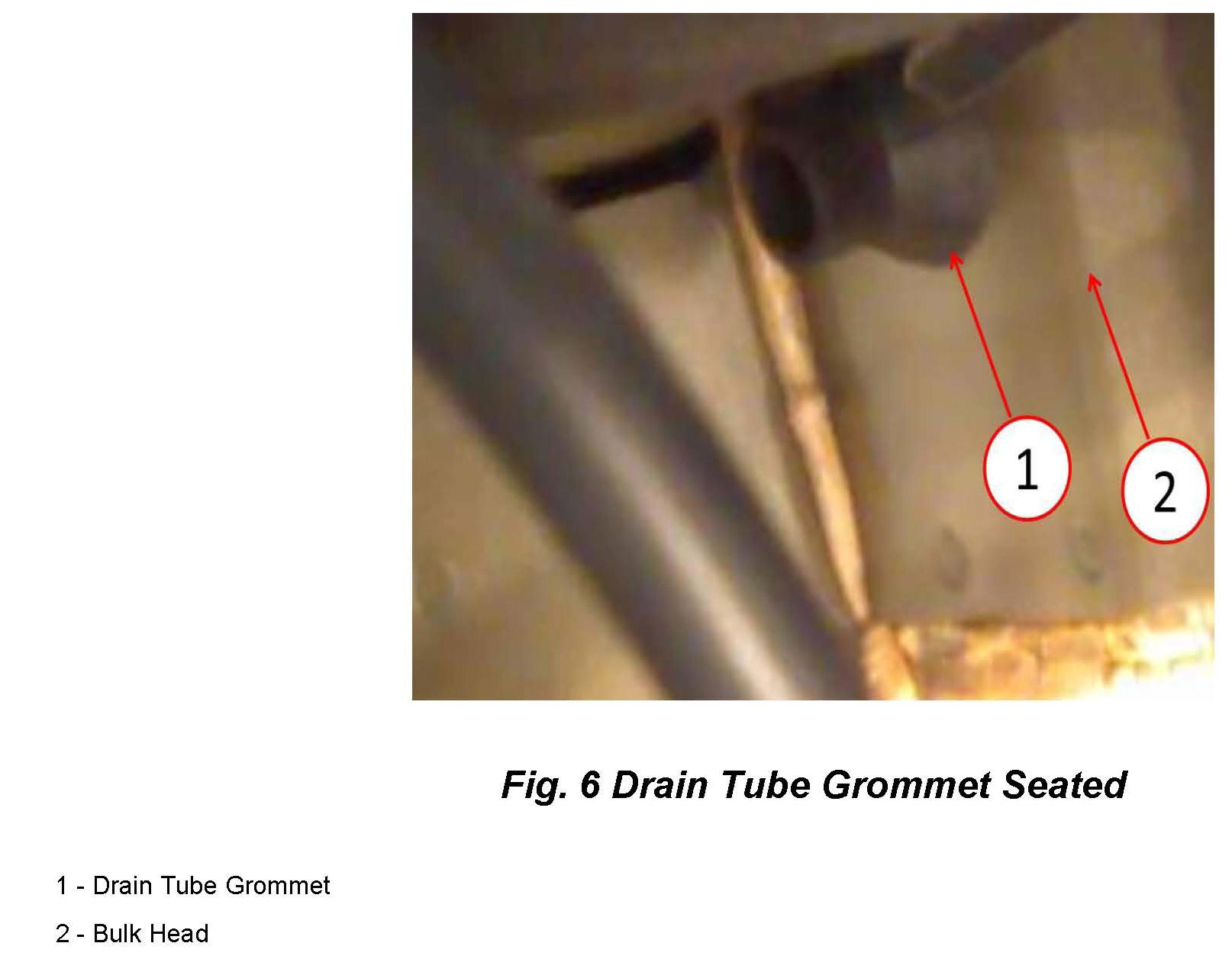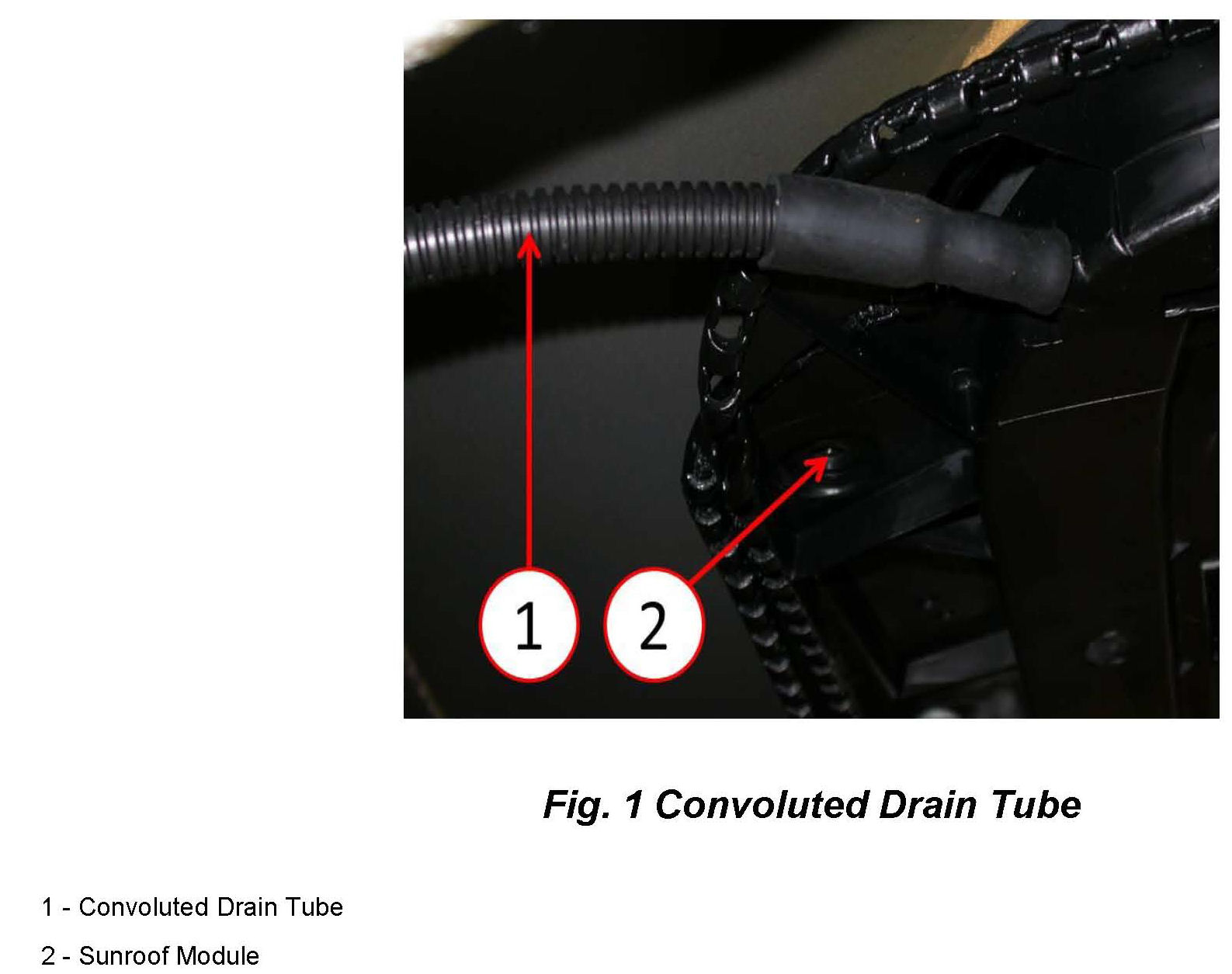 3. If the water was leaking from the front and/or rear of the roof area and built before 12/10/2009 and is equipped with convoluted drain tubes (Fig. 1) proceed to Step # 1 of the repair procedure. If the vehicle was built after 12/10/2009 proceed to Step # 1 of roof seams and rear body plugs.