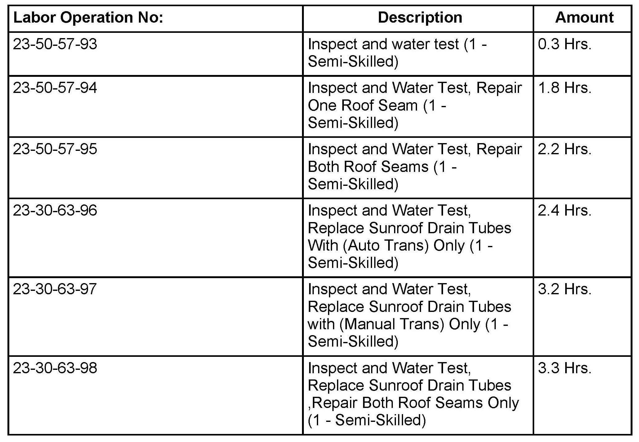 This bulletin involves inspecting the front and/or rear of the headliner for dampness. If necessary add additional seam sealer to the roof ditch and replacing the front and/or rear sunroof drain tubes or grommets.