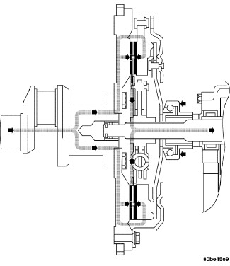 The modular clutch assembly is designed to transmit power from the engine to the manual transaxle. This is accomplished by the friction and clamping force generated when the spring loaded pressure plate locks the clutch disc to the flywheel. The clutch disc, which is splined to the transaxle input shaft, transmits power until the center of the diaphragm spring is depressed, and the clamp force is removed from the disc.