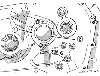 Remove screws at output bearing retainer strap (1).