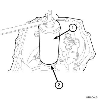 Install Puller L-4518 (1) and remove output bearing (2).