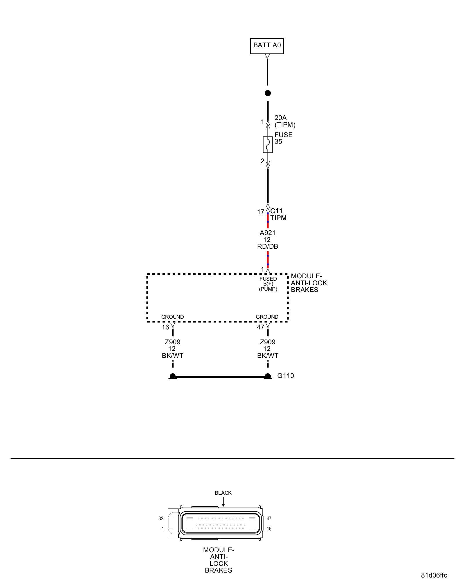 2. Disconnect the Anti-Lock Brake Module harness connector.