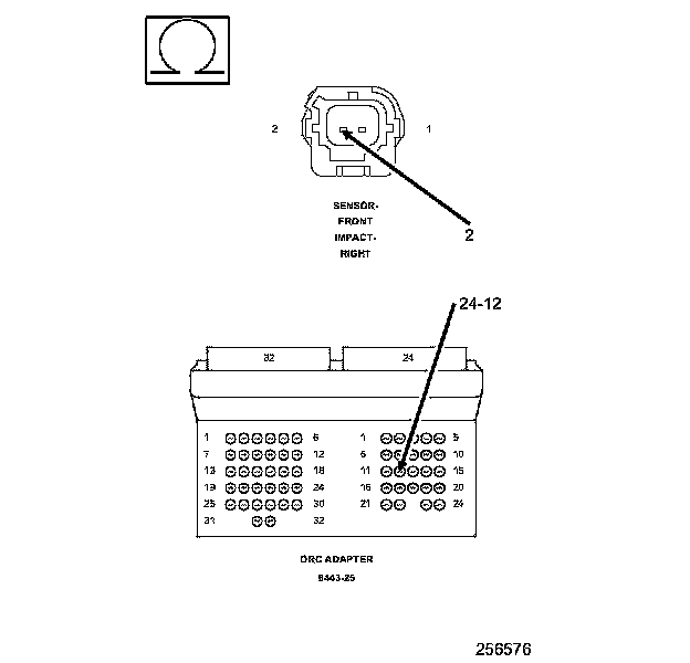 1. Measure the resistance of the (R80) Front Right Impact Sensor Signal circuit between the Front Right Impact Sensor connector and the ORC 8443-25 Adaptor.