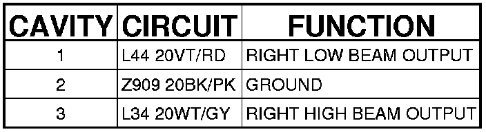 Right Headlamp (Engine Compartment) 3 Way