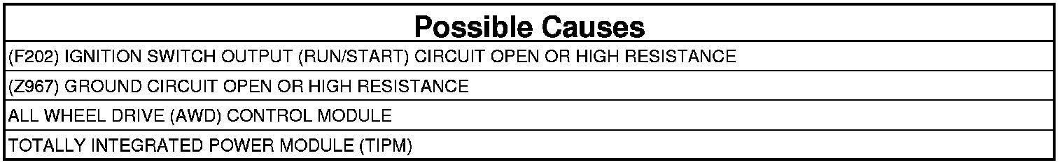 The AWD will set this DTC if the Ignition Run/Start circuit voltage is less than the expected value for more than 10 seconds.