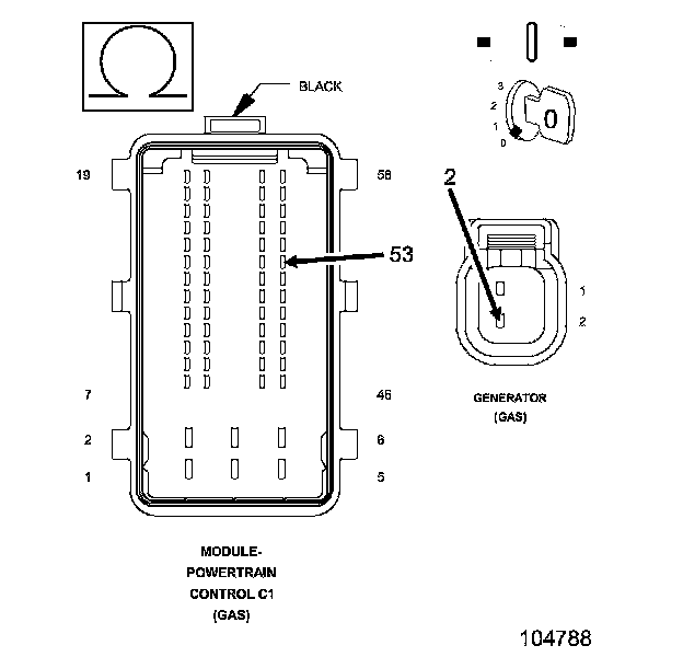 1. Using the wiring diagram/schematic as a guide, inspect the wiring and connectors between the Generator and the Powertrain Control Module (PCM).