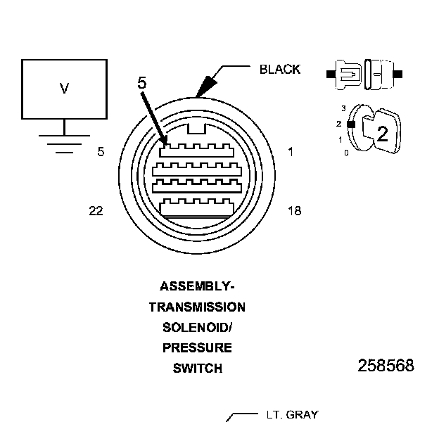 4. Measure the voltage of the (T72) 5 Volt Supply circuit in the Transmission Solenoid/Pressure Switch Assembly harness connector.