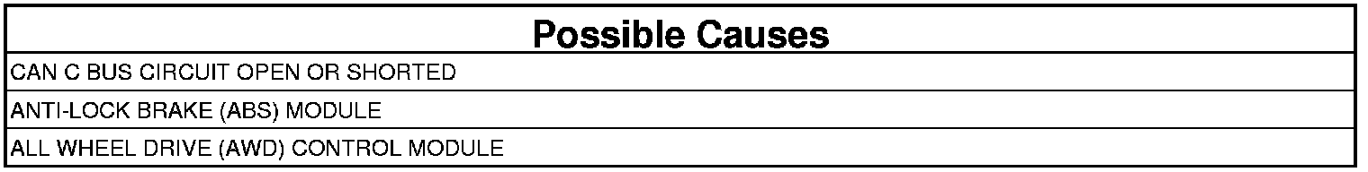 The ABS communicates with other controllers over the CAN C bus. The AWD Module continuously monitors the bus activity and receives the messages it needs. The CAN C bus is also used to communicate AWD Control Module MIL status to the Engine Controller, therefor if the Engine Controller is unable to communicate with the AWD Control Module, the Engine Controller will light the MIL.