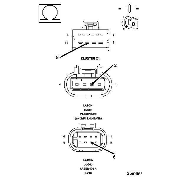 2. Measure the resistance of the (P33) Door Lock Driver wire between the Cluster C1 connector and the door latch connector.