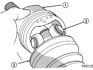 CAUTION: When removing the spider joint from the tripod joint housing, hold the rollers in place on the spider trunnions to prevent the rollers and needle bearings from falling away.