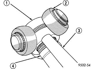 5. Remove the spider assembly (1) from interconnecting shaft (4). If spider assembly will not come off interconnecting shaft by hand, it can be removed by tapping spider assembly with a brass drift (3). Do not hit the outer tripod bearings in an attempt to remove spider assembly from interconnecting shaft.
