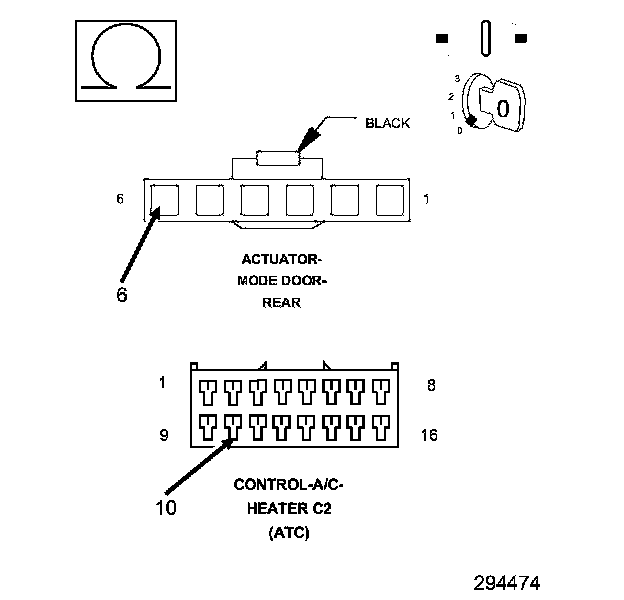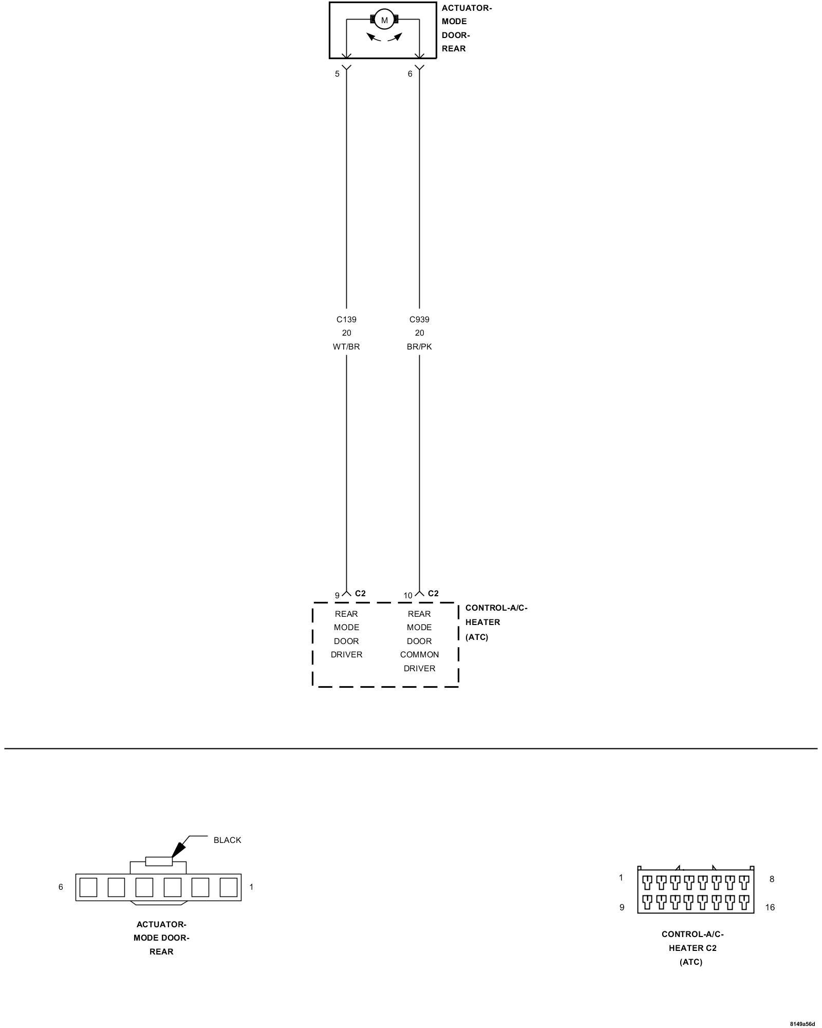 1. Measure the resistance of the (C939) Rear Mode Door Common Driver circuit between the Rear Mode Door Actuator harness connector and the A/C Heater Control C2 harness connector.