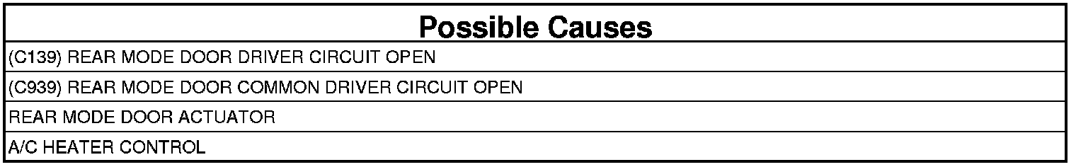 - Repair the (C139) Rear Mode Door Driver circuit for an open.