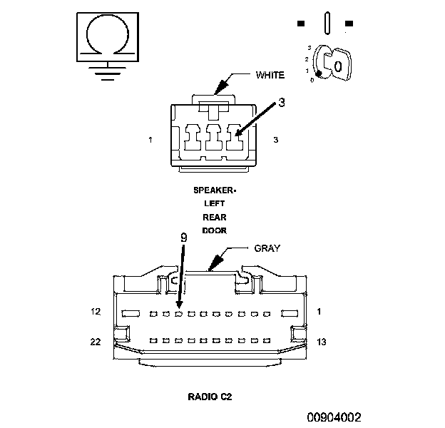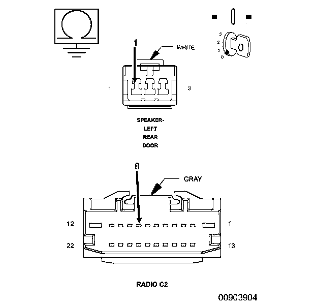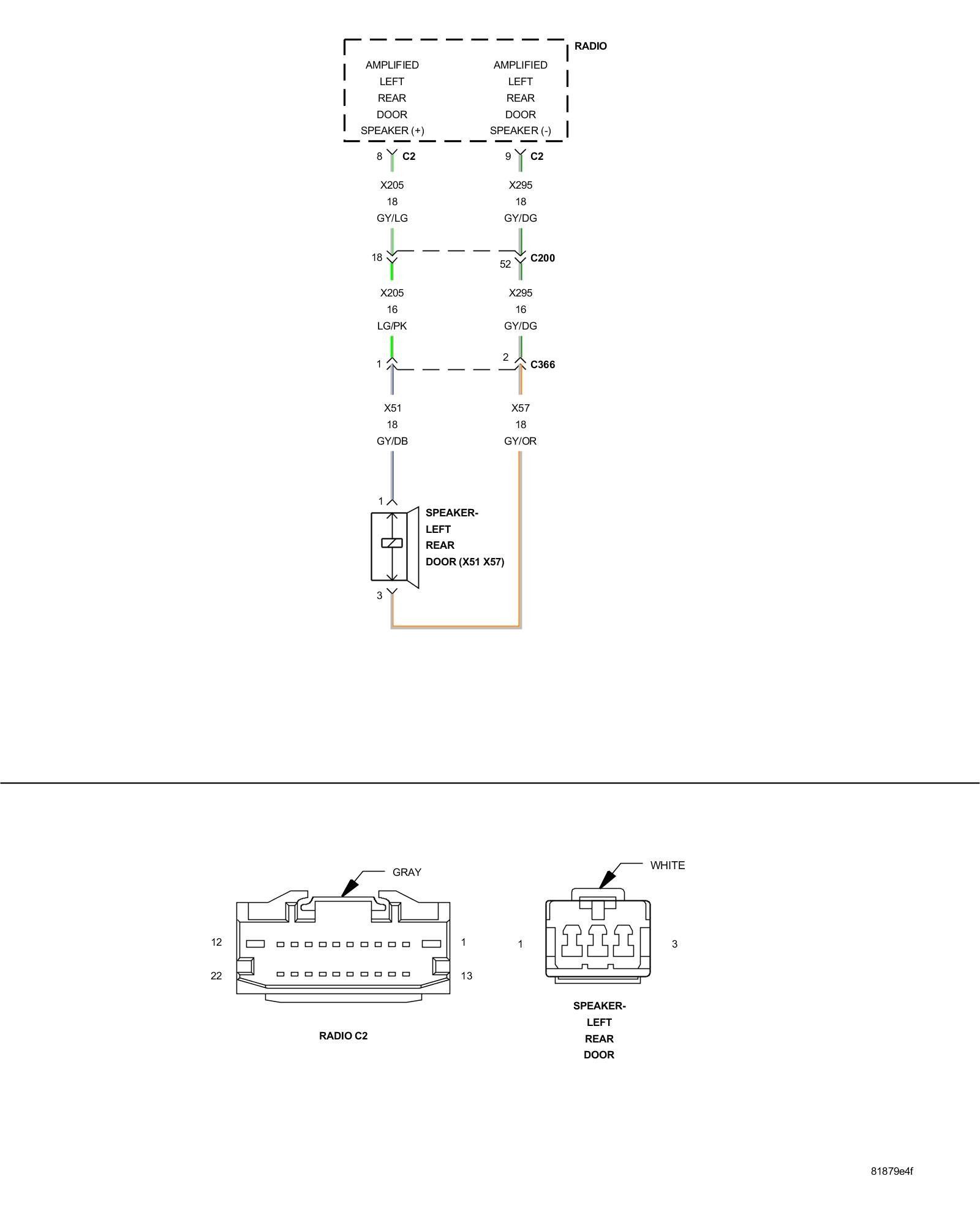 2. (X205) LEFT REAR SPEAKER (+) CIRCUIT SHORTED TO GROUND