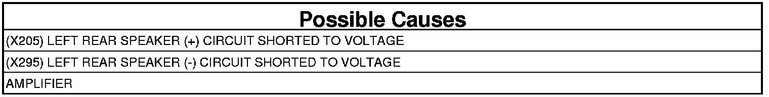 - Repair the short to voltage in the (X205) Left Rear Speaker (+) circuit.