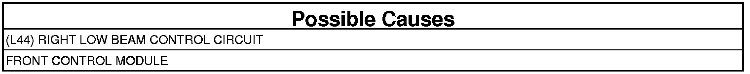 - Repair the (L44) Right Low Beam Control circuit for a short to ground condition.