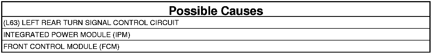 - Repair the (L63) Left Rear Turn Signal Control circuit for a short to ground.