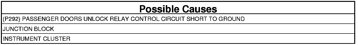 3. (P292) DOOR UNLOCK RELAY CONTROL CIRCUIT SHORT TO GROUND