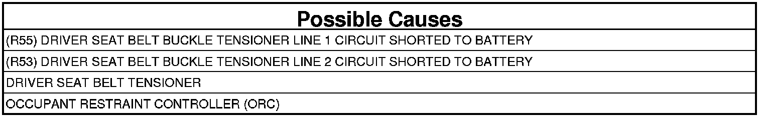 - Repair the Driver Seat Belt Tensioner circuits with voltage present for a short to battery.