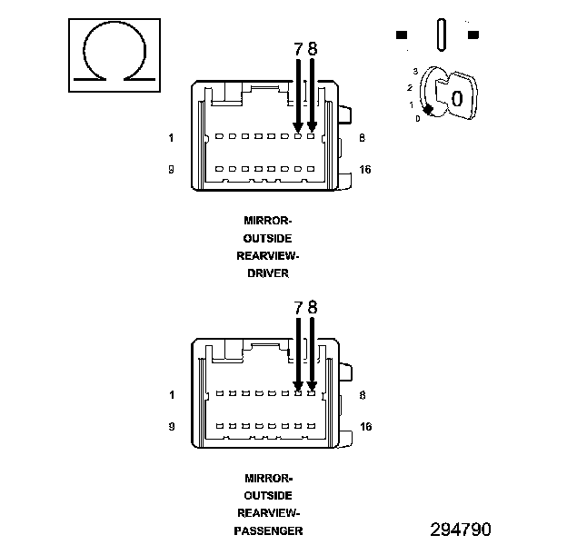 2. TEST FOR A SHORTED OUTSIDE REARVIEW MIRROR