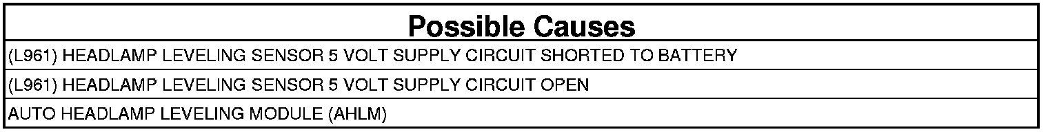2. (L961) HEADLAMP LEVELING SENSOR 5 VOLT SUPPLY CIRCUIT SHORTED TO BATTERY
