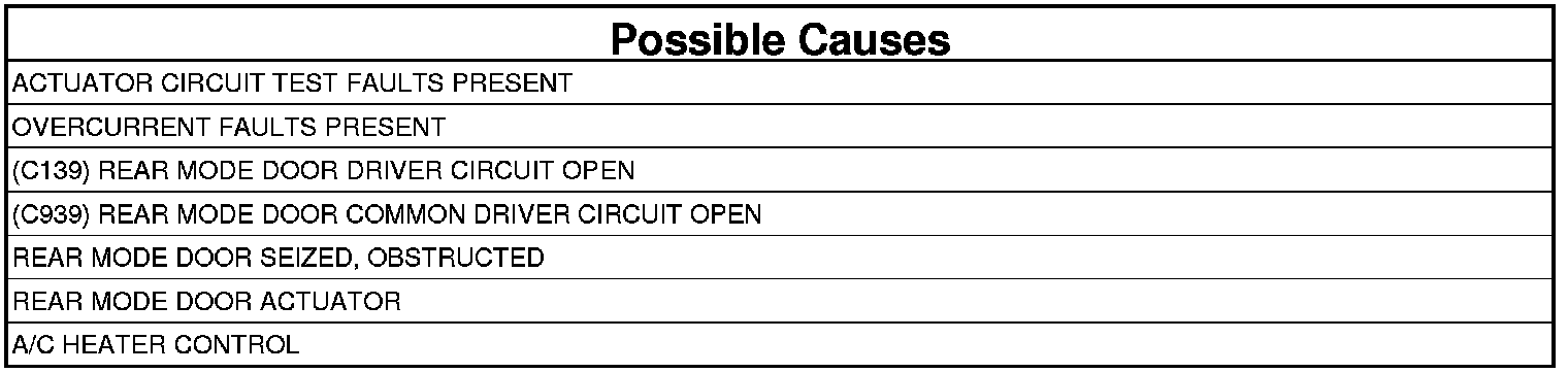 - Repair the (C139) Rear Mode Door Driver circuit for an open.